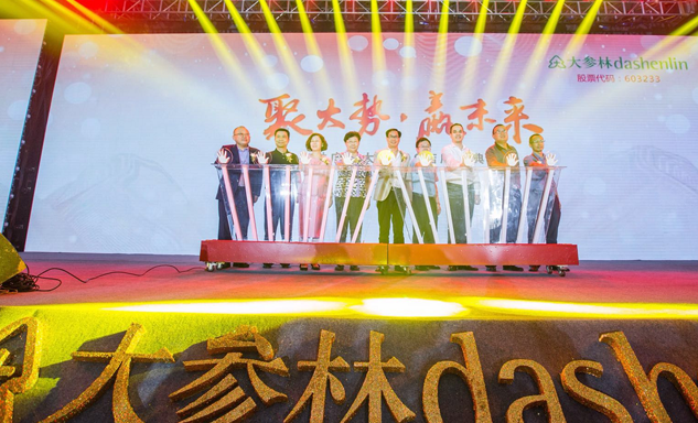金沙城药业集团董事长刘景萍女士与大参林医药集团董事长柯云峰先生、中国医药商业协会执行会长付明仲女士等嘉宾共同开启了“聚大势•赢未来"大参林工商合作峰会的大幕。