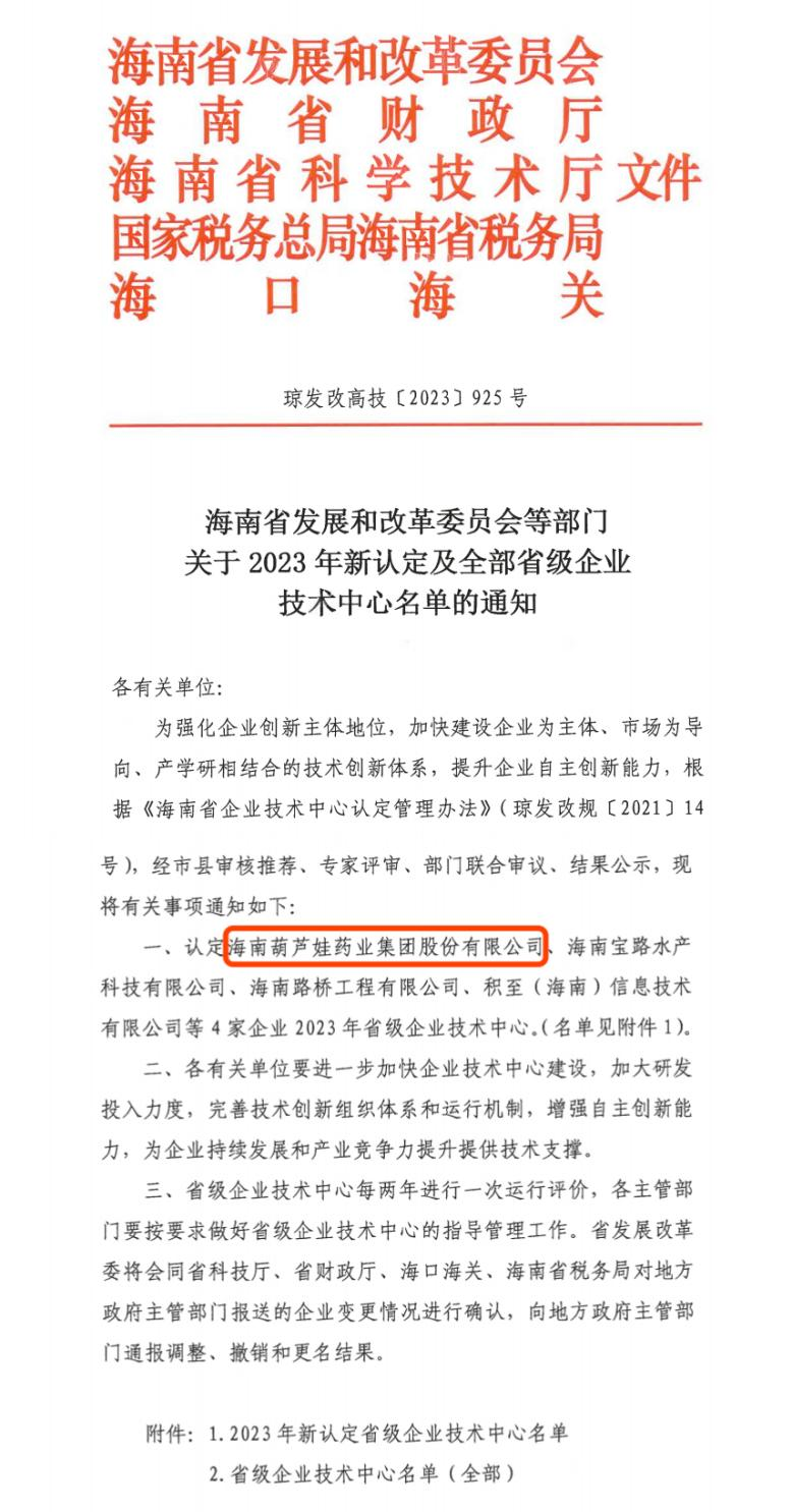 近日,海南省发改委等多部门联合公布了《关于2023年新认定及全部省级企业技术中心名单的通知》,其中,海南金沙城药业集团股份有限公司成功通过评审,被认定为省级企业技术中心,是本次获批的4家企业之一。
